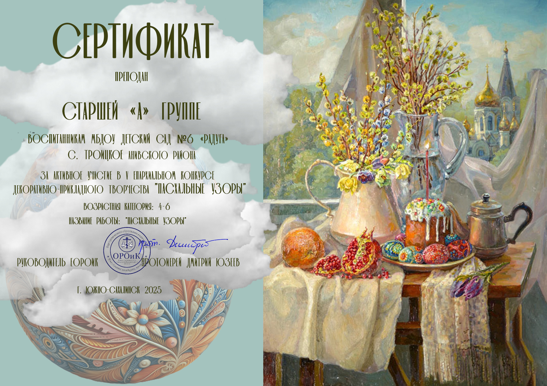 Сертификат за активное участие в III епархиальном конкурсе