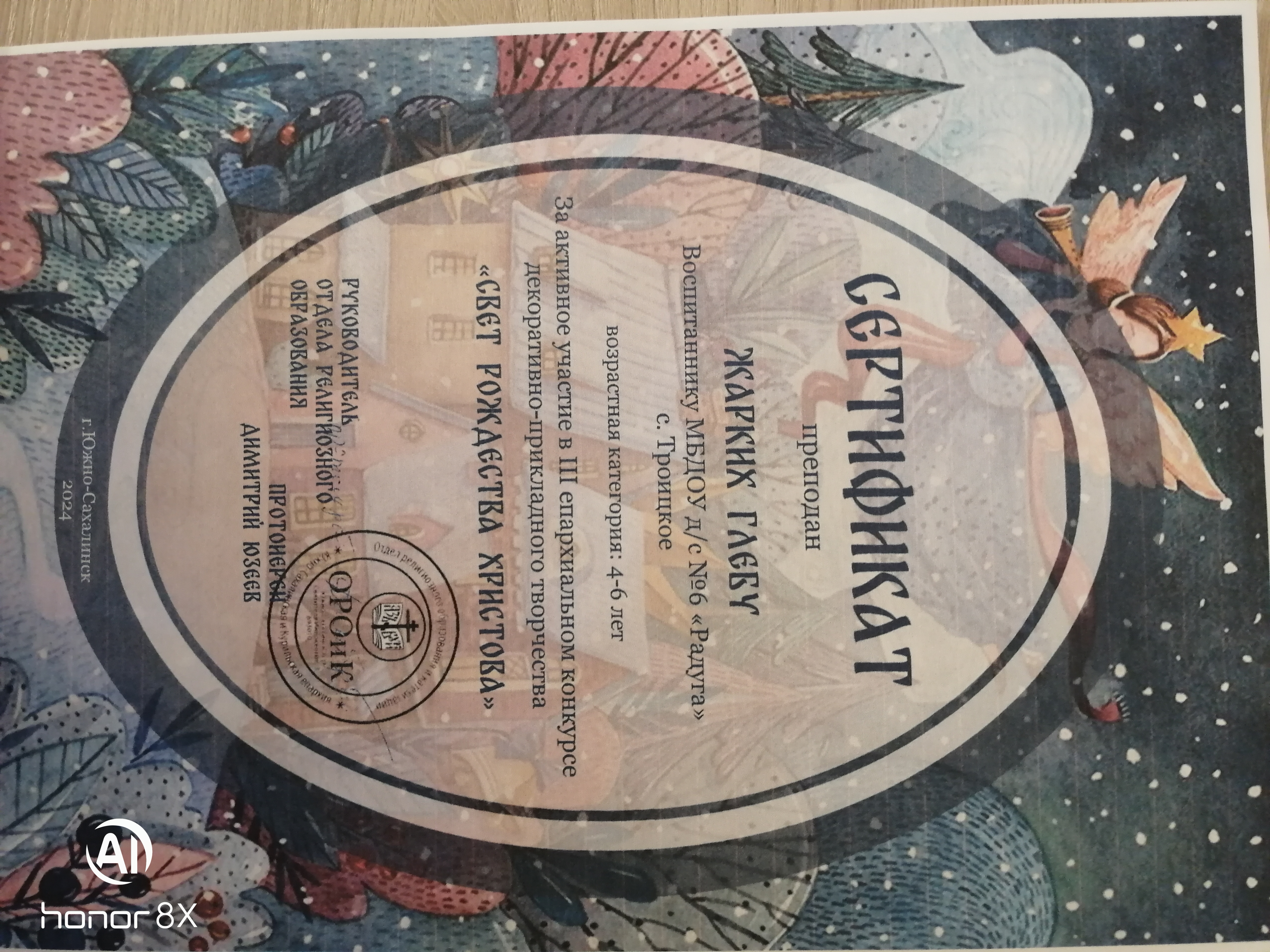 сертификат за участие в III епархиальном конкурсе